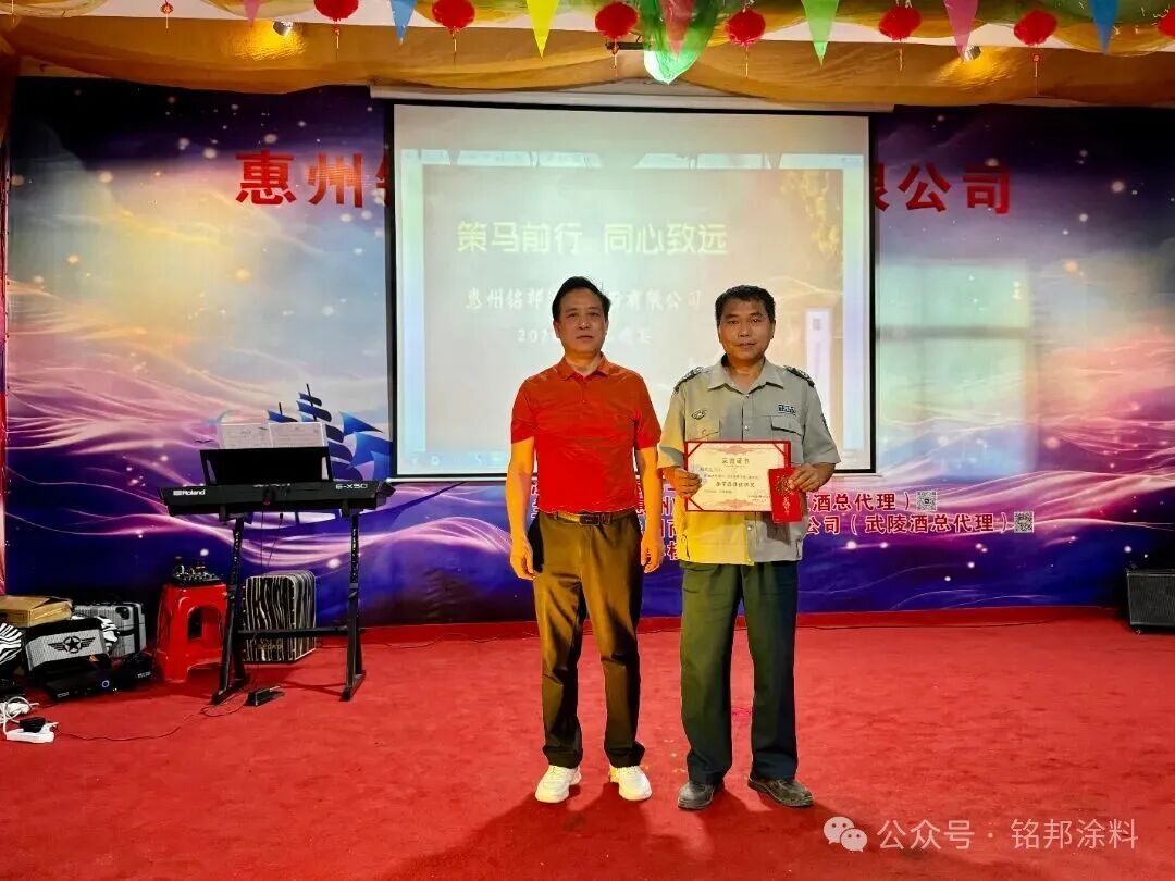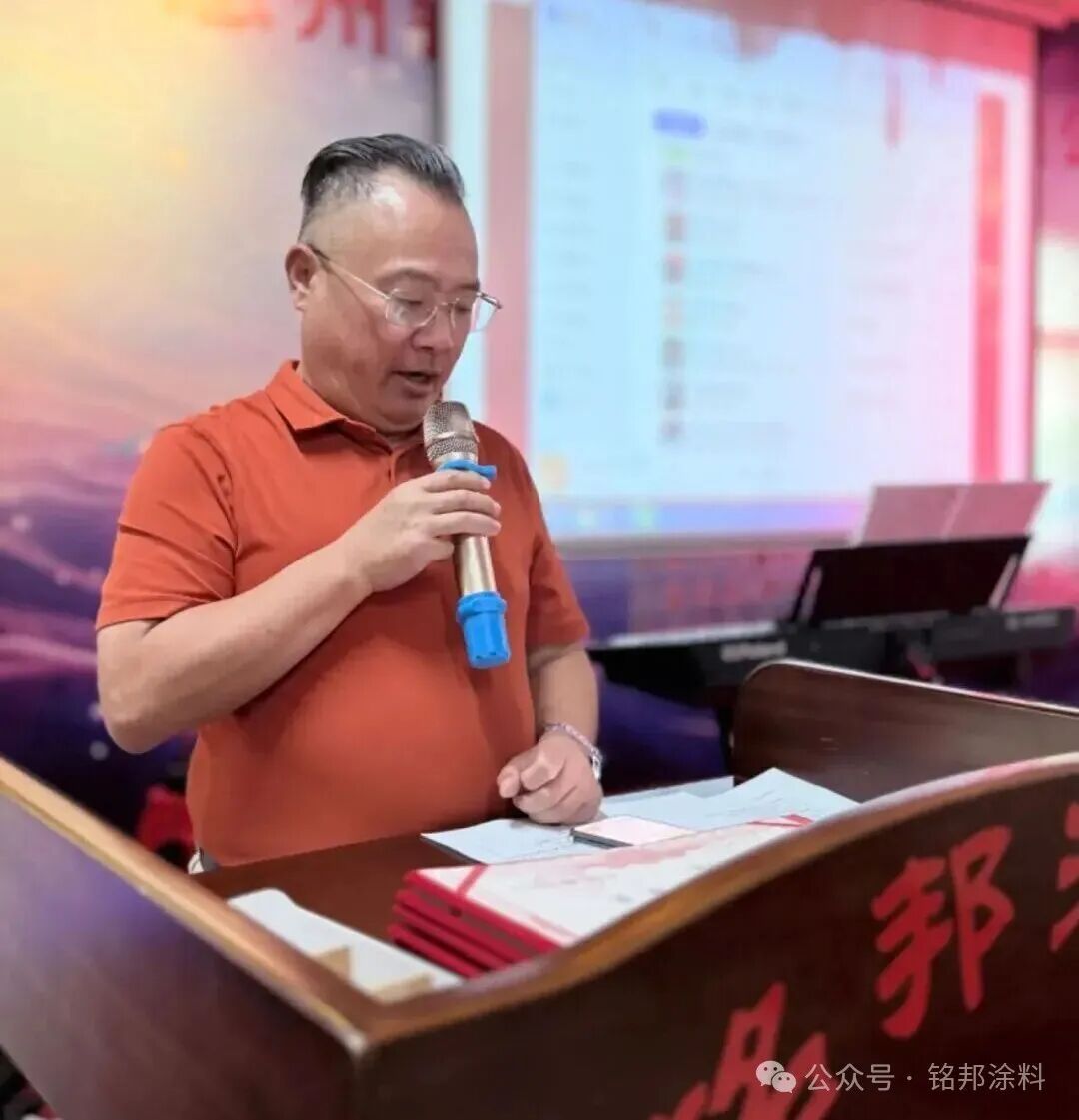 动员会上,惠州铭邦涂料股份有限公司董事长陈建华发表热情洋溢的致辞。他介绍,铭邦公司始创于2005年,二十余年来始终坚守“以质量为标准、以客户为中心、以信誉求发展”的服务宗旨,专注高端化工涂料的研发、生产与销售。面对复杂市场环境与激烈行业竞争,全体铭邦人同心同德、攻坚克难,企业稳健发展,先后获评“安全生产标准化企业”“园林式工厂”,并成为多家上市公司及知 名企业的指定供应商,成绩斐然、口碑卓著。